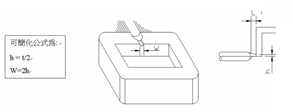 適用于大部塑料、各種側邊允許澆口痕跡的制品,開在制品的邊緣或邊緣頂面,又分標準入水、搭接入水和扇形入水,下圖中t為產品壁厚,L一般為(0.8—1mm)
